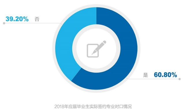 2018年的调研数据发现,应届毕业生的专业对口率呈现持续下降趋势,39.2%的已签约应届毕业生表示签约岗位与在校学习专业并不对口,同比去年小幅上涨了0.7%,反映出在大学校园中,专业对就业岗位的影响在持续减少。这个现象一方面反映出我国高校的专业设置和市场用人需求之间依旧存在比较明显的结构性矛盾,另一方面也受到了国内“移动互联网”、“共享经济”、“粉丝经济”、“智能制造”、“新零售”等新兴产业和商业模式的影响,对跨领域就业、多元化人才的需求持续上升,因此给予了大学生更多的就业机会。